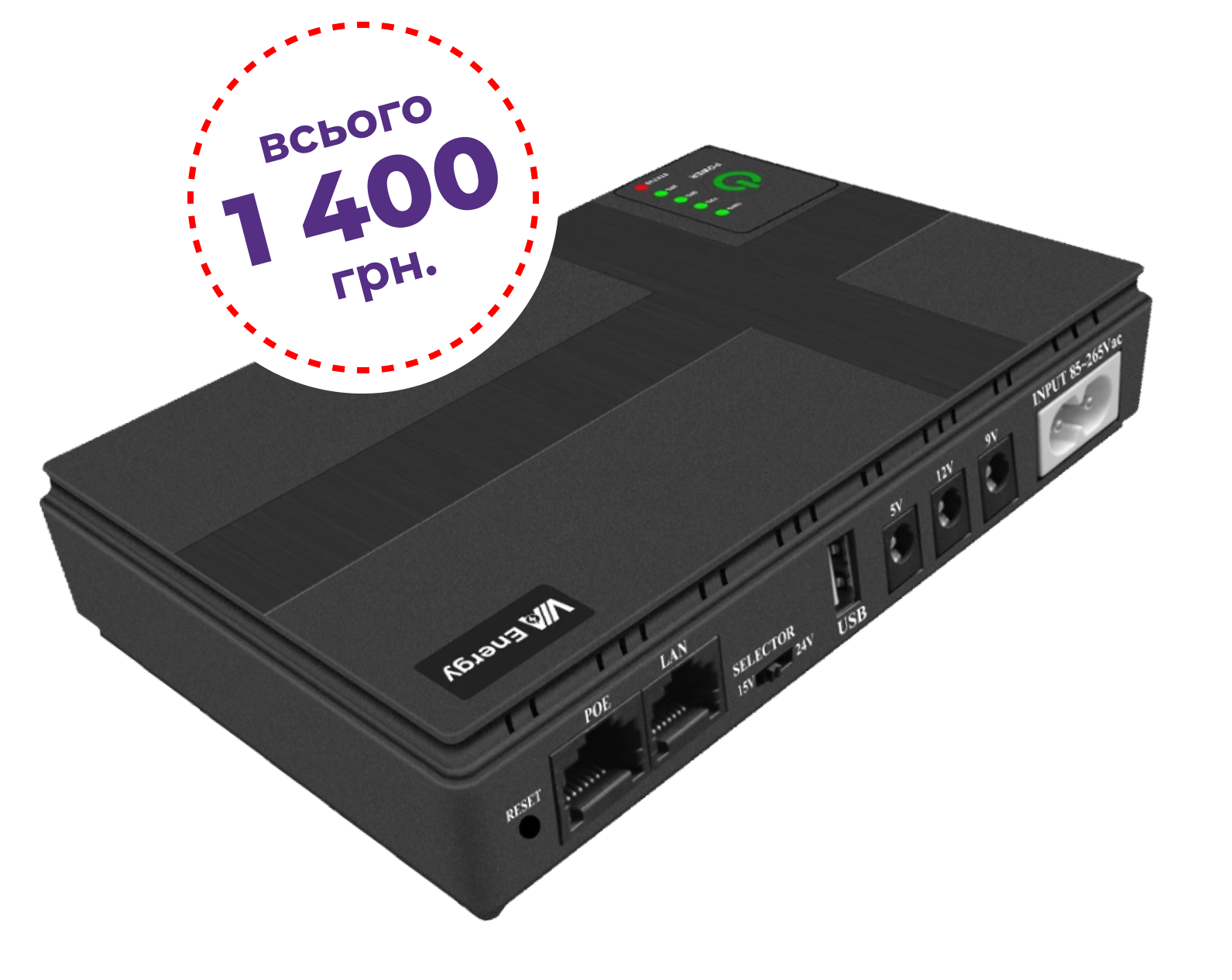 Пристрій, який забезпечує безперебійну роботу інтернет обладнання, підключеного до нього, у разі відключення електроенергії. ДБЖ для маршрутизатора та PON-термінала від Net-City забезпечить вам до 5-7 годин стабільної роботи в Інтернеті.